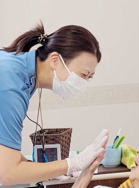湘南ふじさわ歯科では、唇、舌、頬の運動、発声、呼吸の訓練や唾液腺のマッサージを行い、お口の機能を活性化させ、口腔機能の維持向上を図ります。